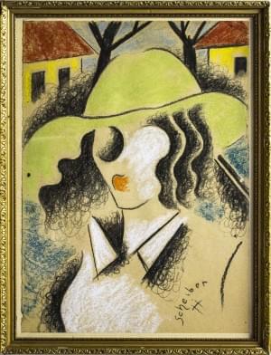 Portrait de femme, pastel gras sur papier, signé Scheiber, 41x30...