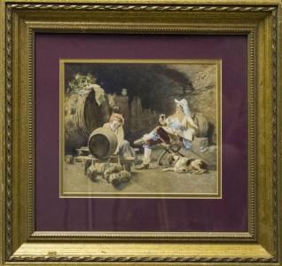 Scène de cave, aquarelle sur papier, signature illisible, 19x23...