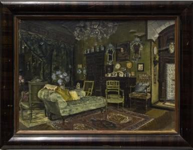 Vue d'un salon, aquarelle sur papier, 33x48 cm