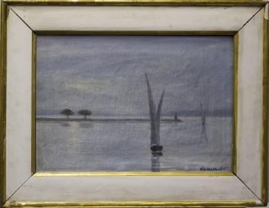 Poterie jaune et Les barques, deux huiles sur toiles, signées et...