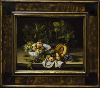 Paire de natures mortes, huiles sur carton, 34x34 cm