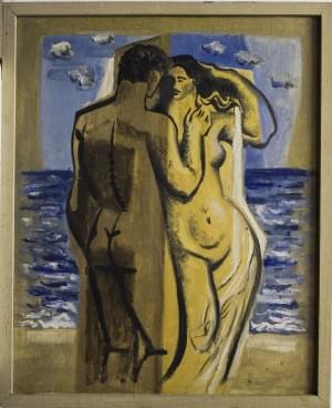 Tendresse sur la plage, huile sur toile, 60x49 cm