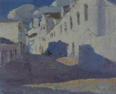 Rue de village, huile sur panneau, signée et datée 1921, 34x42 c...