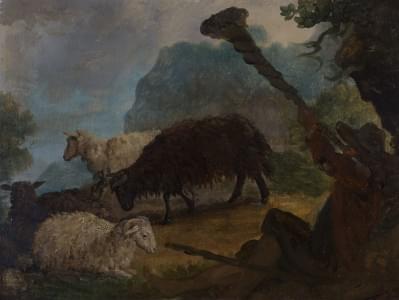 Berger et moutons, huile sur toile marouflée sur bois, 24x33