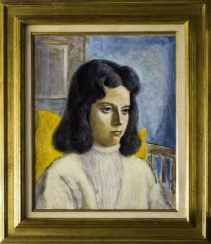 Paire de portraits de jeunes femmes, huiles sur toile et pavatex...