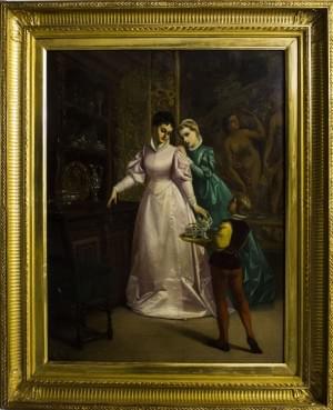 Scène de taverne, huile sur toile, signée Meissonier et datée 18...