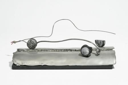 Night Drive, métal patiné sur une terrasse en bois, signé, 18x52...