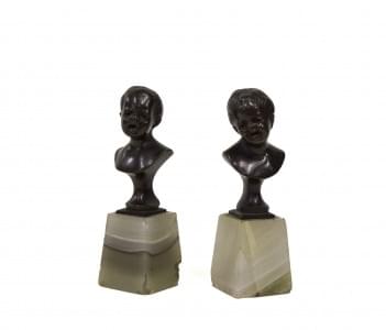 Un groupe et une statuette en régule et laiton, 11 et 13 cm
