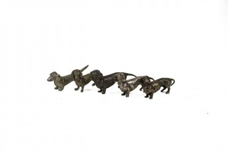 3732. Ensemble de cinq statuettes représentant des chiens saucisse