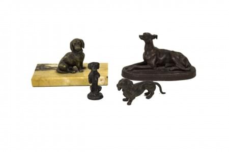 3730. Ensemble de trois statuettes représentant des chiens, Vienne