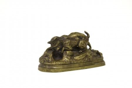 Chien à la tortue, bronze à patine brune, foncé nuancé, H 16 cm