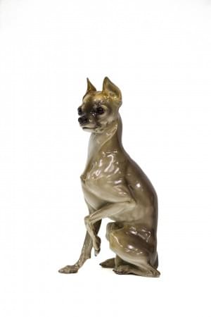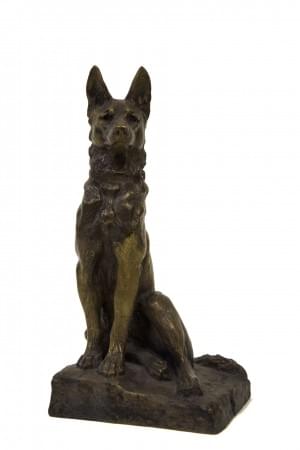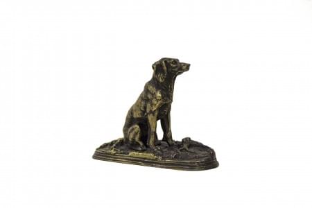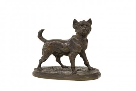 Chien griffon assis, bronze, signé, H 18,5 cm