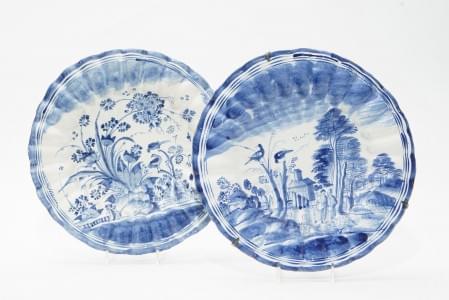 3765. Deux plats ronds à godrons, Italie, XVIIIe s