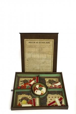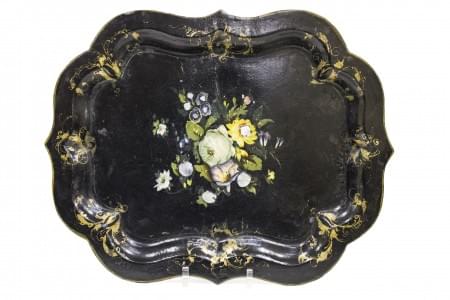 A décor de fleurs, carton bouilli et nacre incrustée sur fond no...