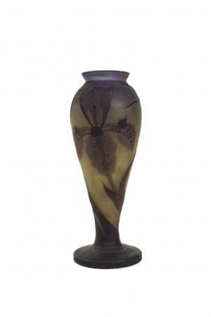 Verre multicouche dégagé à l'acide à décor d'iris, H 22 cm