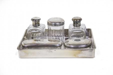 Garniture de coiffeuse, 5 flacons + 1 plateau