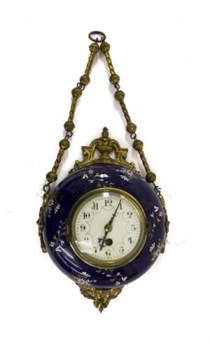 Bronze et laiton émaillé à décor de fleurs sur fond bleu nuit, H...