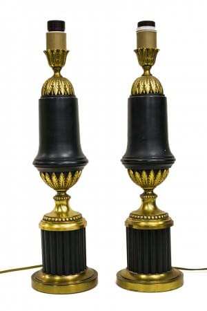 3873. Paire de lampes à motif d'échassier et une lampe assortie à moti...