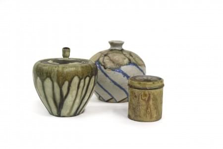 Trois coupes, céramique émaillée fourrure de lièvre et polychrom...