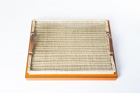 Assiette à motif soleil et palme noir sur fond rouge et plaque à...