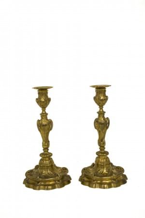 3820. Candélabre lampe bouillotte de style Rocaille à deux lumières