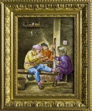 3879. Suite de quatre plaques en porcelaine d'après David Teniers
