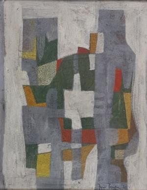 Composition abstraite, huile sur carton, signée et datée 1965, 2...