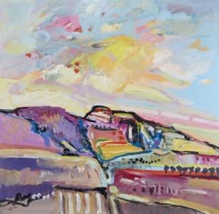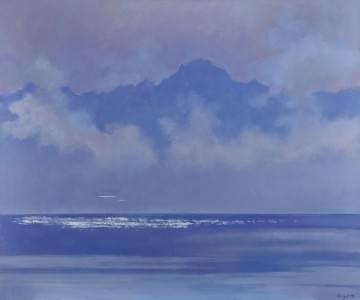 Lumière du Léman III, huile sur toile, datée 2013, 100x120 cm