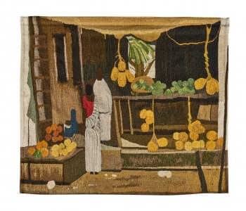 Chez le marchand, tapisserie, atelier Sylvia Püschel, 160x190 cm