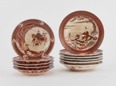 Porcelaine émaillée polychrome à motifs animés de personnages et...