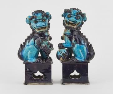 Cuivre et émaux polychromes à décor de kilins sur fond bleu, D 3...