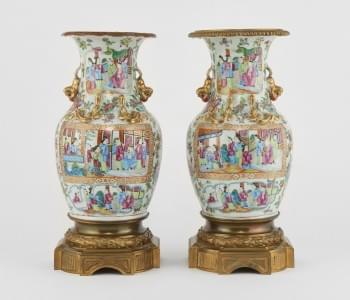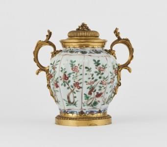 Porcelaine émaillée polychrome, monture de style Louis XVI en br...