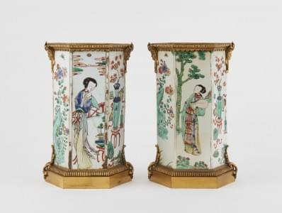 815. Paire de vases hexagonaux famille verte, Chine, période Kangxi,...