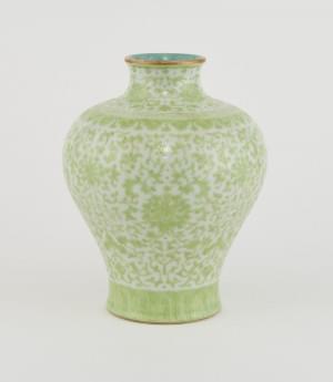 Porcelaine émaillée vert et blanc, à décor de rinceaux, H 25 cm