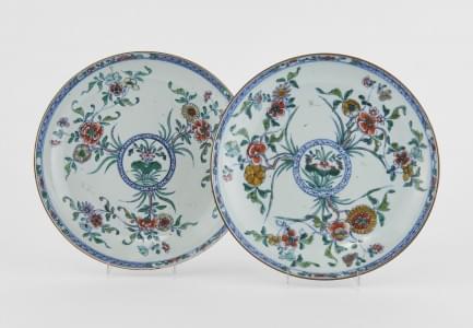 Porcelaine émaillée polychrome à motifs floraux, D 26,5 cm