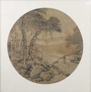 818. Plaque circulaire à décor d'un personnage dans un jardin, Chine,...