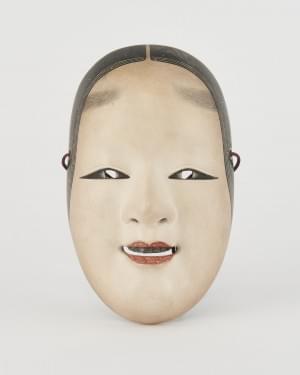 Laque polychrome et or à décor de masques du théâtre Nô, 4x12x10...