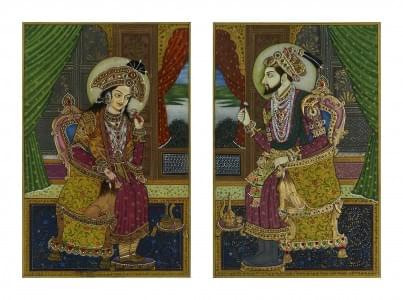 Couple de dignitaires, paire de miniatures sur marbre, 22x15 cm