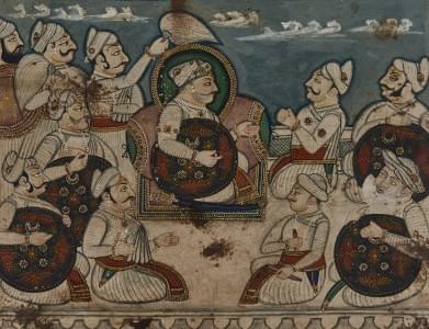 Scènes de chasse et scènes de palais, gouache et encre sur papie...