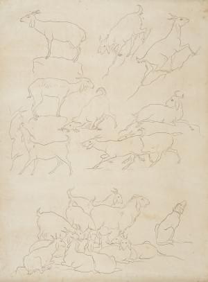 Troupeau de chèvres, esquisse à l'encre sur papier, 78x56 cm