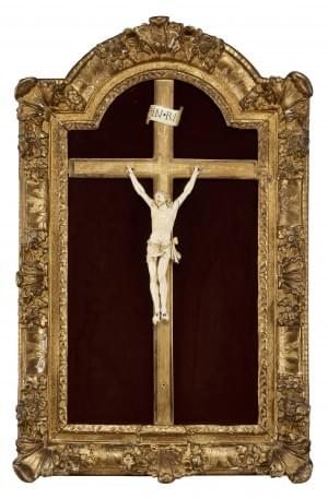Ivoire sculpté, encadrement en bois sculpté de la même époque, H...