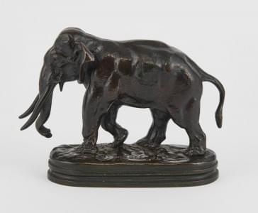 Eléphant marchant, bronze à patine brune, L 19 cm.