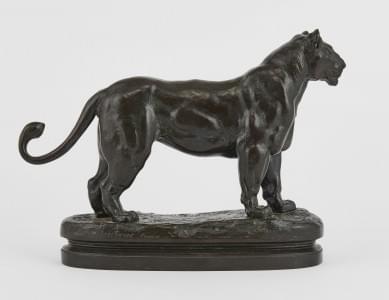 Lionne debout, bronze à patine verte, fondeur Barbedienne, no 60...