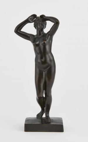 Femme à la toilette, bronze à patine noire, H 36 cm