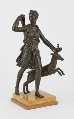 Bronze à patine brune, base en marbre jaune de Sienne, H 38,5 cm
