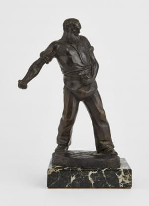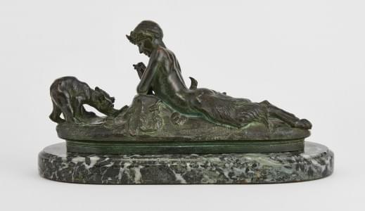 Satyre aux ours, bronze, socle en marbre noir, signé et porte l'...