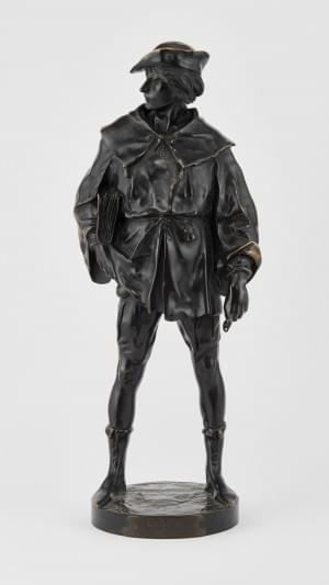 Escholier 14e siècle, bronze à patine noire, H 60 cm