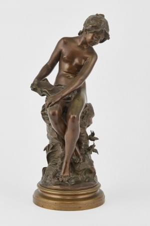 Femme au crapaud, bronze à patine brune, H 24 cm