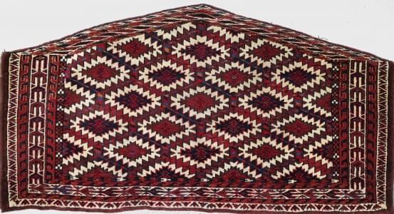 Laine à motif de médaillons losangiques crénelés sur fond rouge,...
