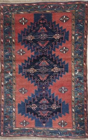 Laine à motifs de trois médaillons losangiques bleus sur fond br...
